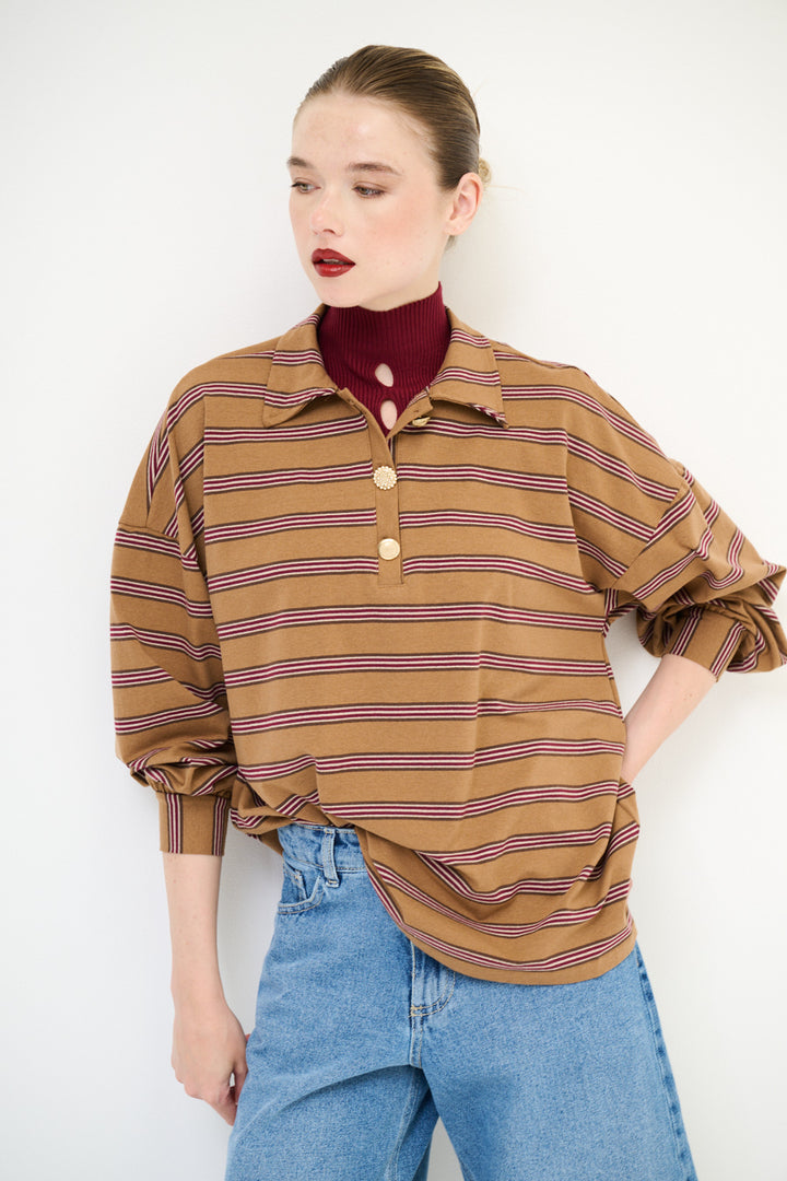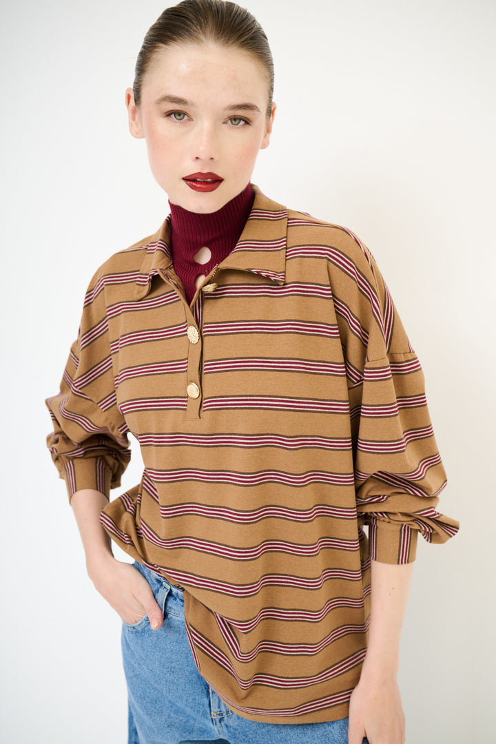 POLO RIGHE BOTTONI GIOIELLO KIKISIX